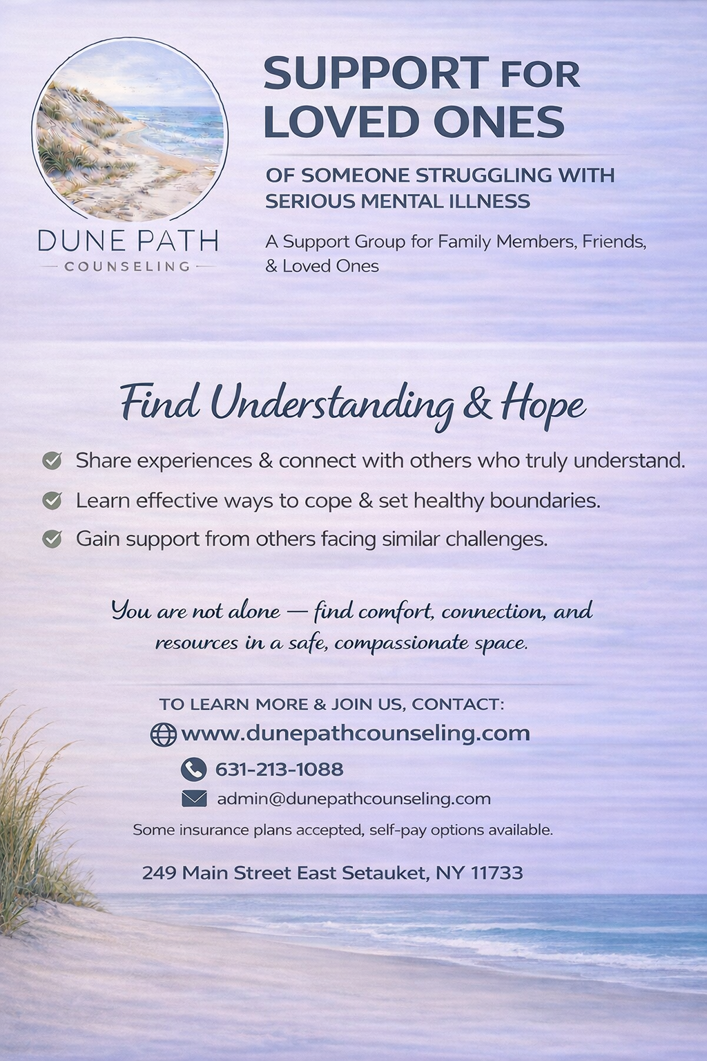 Caring for someone who is struggling with serious mental illness can feel draining emotionally, mentally, and even physically. This support group designed to be a safe, nonjudgmental space to talk honestly, connect with others who understand the complexity of your experience, and gain tools to navigate boundaries, stress, and uncertainty. You don’t have to hold it all on your own, this is a place to feel supported, grounded, and less alone